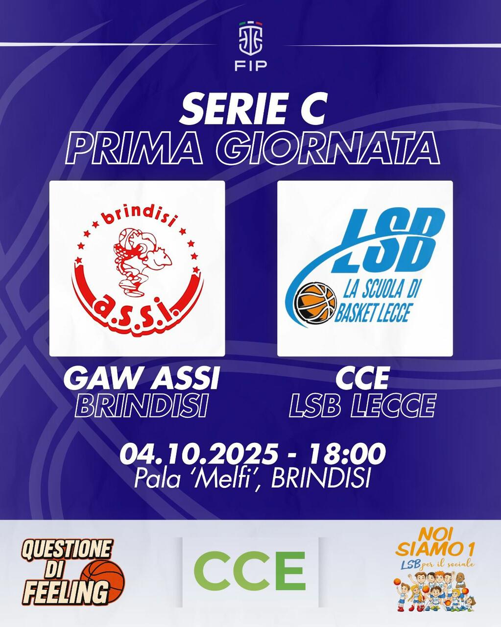La LSB sarà impegnata nell’anticipo contro la Gaw Assi Brindisi, in una gara che si disputerà a porte chiuse, a causa della squalifica del campo inflitta alla squadra di casa. La sanzione è legata ad alcuni episodi avvenuti durante l’ultima partita dei playoff 2025 disputata a Foggia.